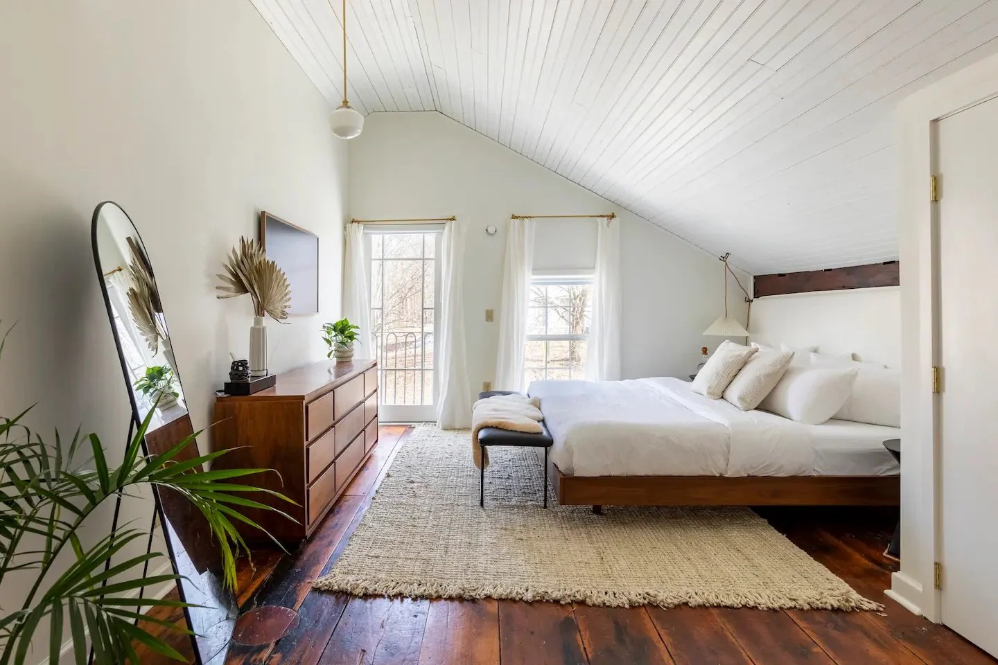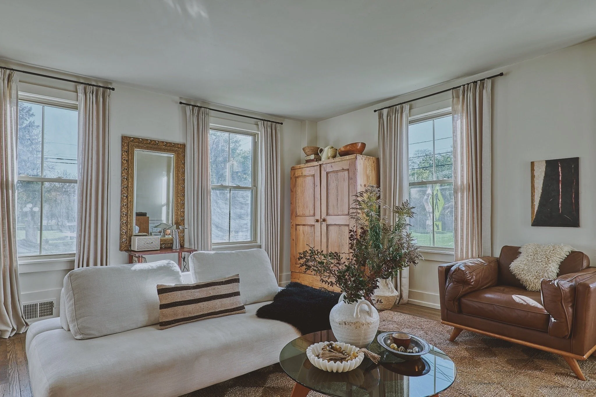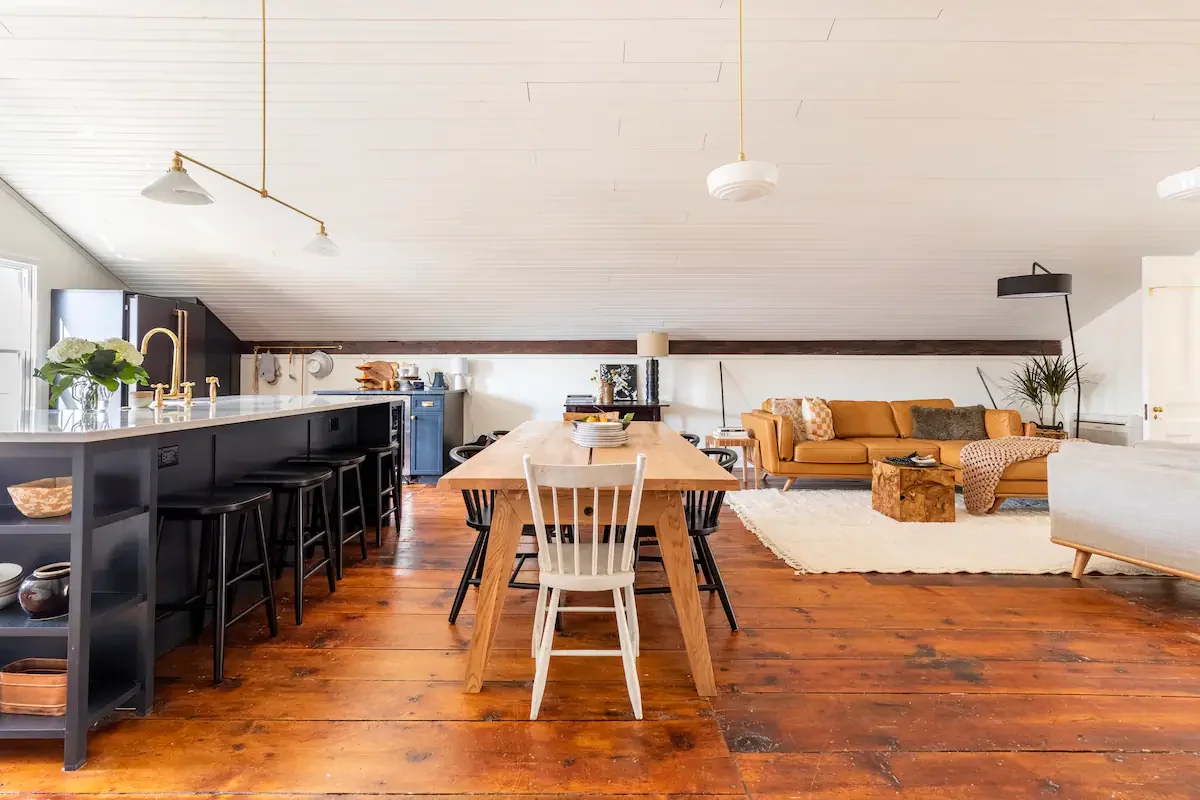 Our warm, historic downstairs space is ideal for intimate gatherings with friends. High ceilings, original hand-painted hardwood floors, and curated vintage décor create a welcoming backdrop for a weekend you won’t forget.
